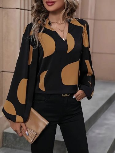 • Kadın uzun kollu v yakalı desenli modal bluz