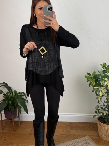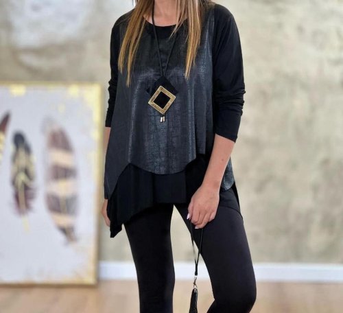 • Kadın siyah deri yelekli kolye dahil üçlü takım